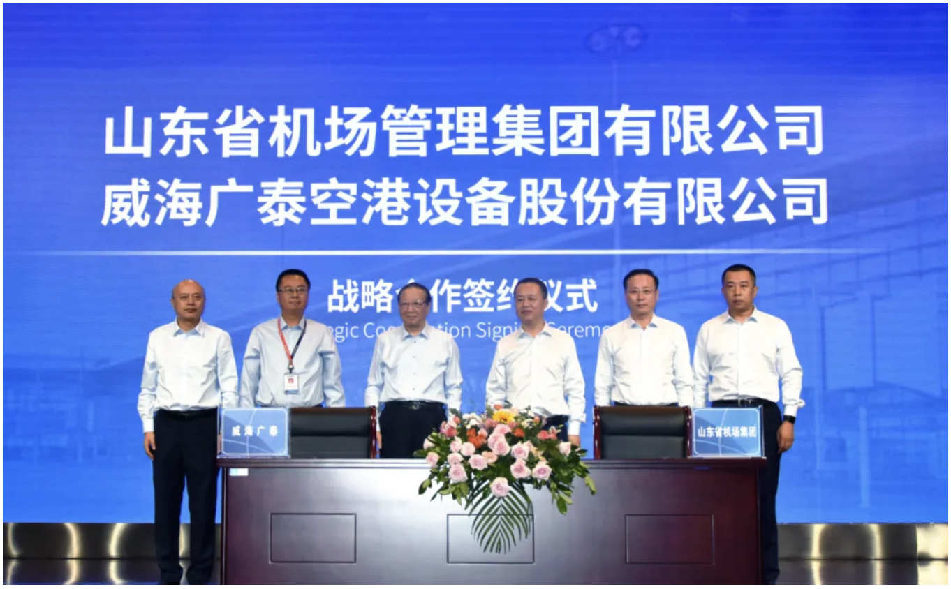 2020年9月28日下午,山東省機場管理集團有限公司(以下簡稱“山東機場集團”)和威海廣泰空港設備股份有限公司(以下簡稱“威海廣泰”)在威海隆重舉行戰(zhàn)略合作框架協(xié)議簽約儀式,雙方共敘友情,共謀未來發(fā)展,尋求合作共贏新模式。威海廣泰董事長李光太和山東機場集團黨委書記、董…