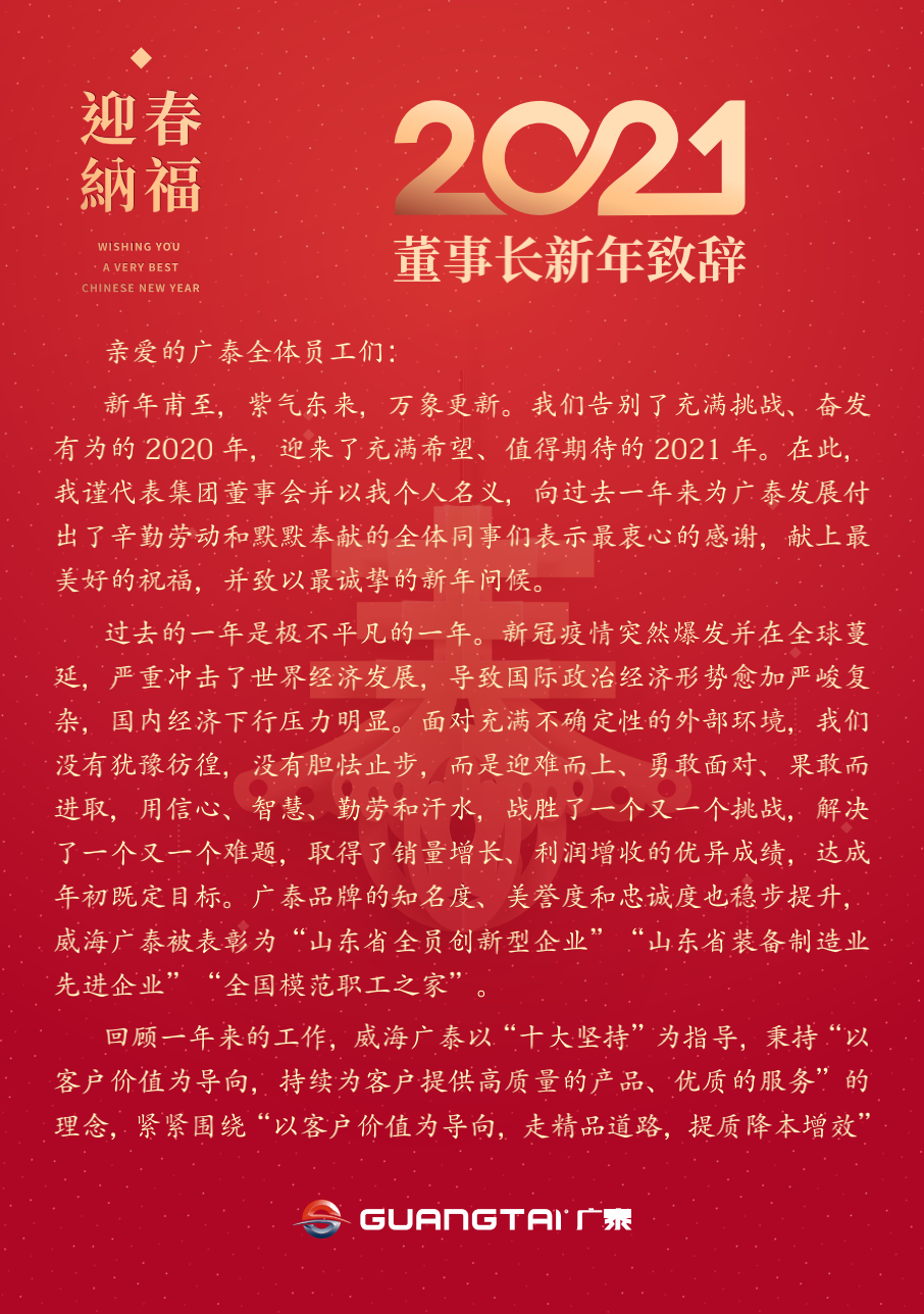 威海廣泰始終秉承“人才是企業(yè)發(fā)展之資本”。踐行“大人才觀”,甄選高度責任感而又創(chuàng)新思考的人,著力打造具有全球視野的精英團隊,全面支撐公司戰(zhàn)略實施。